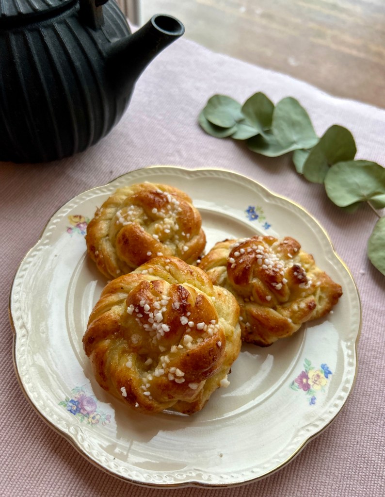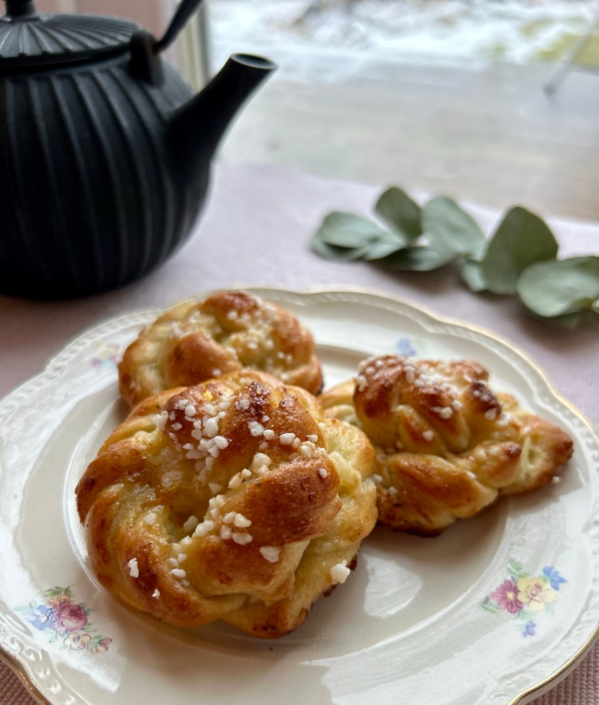 Jag ÄLSKAR saffransbullar! Varje år testar jag att fylla dem med nya smaker. Här är en ny favorit med mandel- och kardemummafyllning! Jag tog med dem på en pulkadag och vi värmde dem på elden och det blev så galet gott! Inte en smula fanns kvar 😍