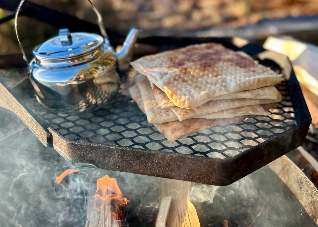 – Dela i tre delar och baka ut så de täcker bakplåtspapper eller dela i 6-8 delar och baka ut till cirklar, de ska vara ca 3-5mm tjocka, när fu kavlat ut degen så rullar du över den med en kruskavle, om du har en