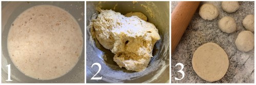 3. Dela degen i två delar och dela varje del i 10-12 delar. Rulla till små bollar, kavla dem tunt och nagga dem(stick små hål i dem med t.ex. en gaffel). Jäs ca 30min under fuktad handduk