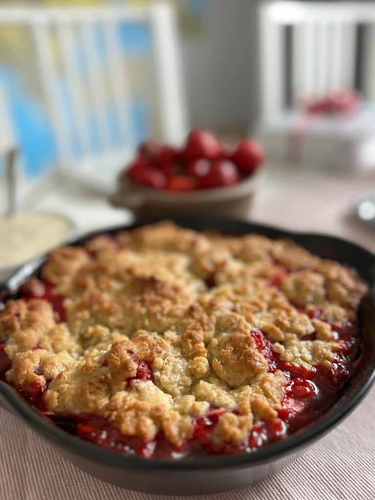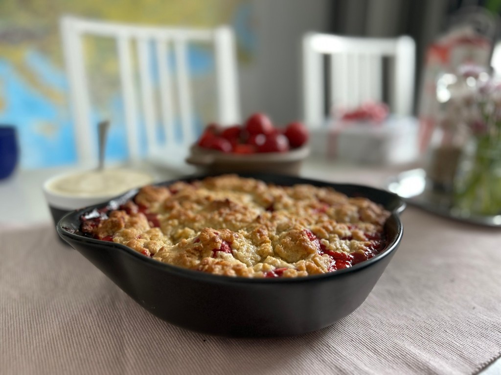 – Koka upp och låt sjuda 10-15min och mosa jordgubbarna under tiden