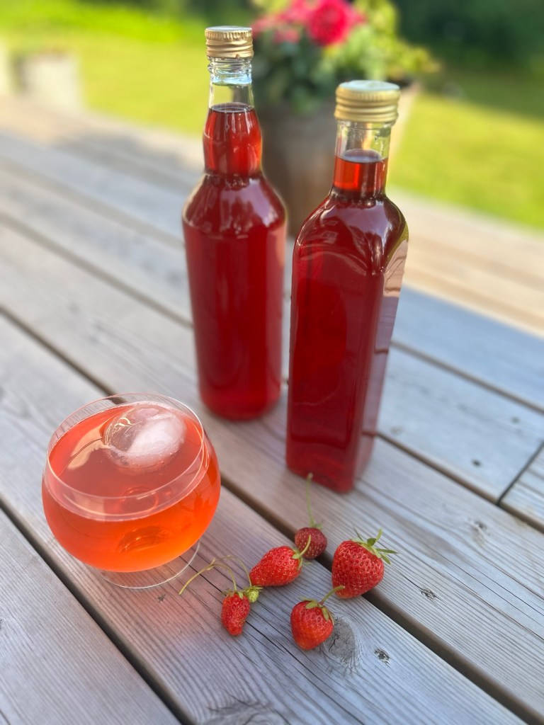 Ett enkelt recept på en urgod jordgubbssaft! 😋 Ett recept men tre olika smaker, uteslut citron eller vanilj eller båda för olika goda smaker! 😉