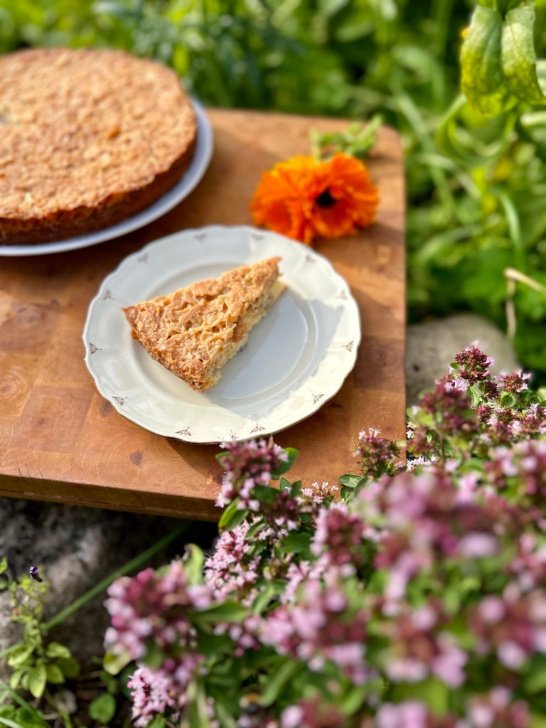 – Koka upp smör, socker, mjöl och mjölk, ta från plattan och rör ner den flagade mandeln – Ta ut kakan och bred på toscan och grädda ytterligare 20min i mitten av ugnen, toscatäcket ska bli gyllene i färgen – Låt svalna och ät ljummen med vaniljglass eller låt kallna och njut av den som den är