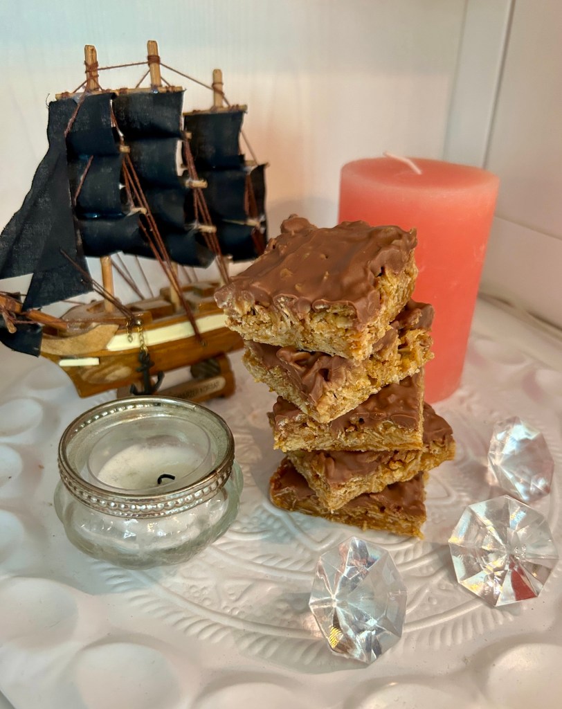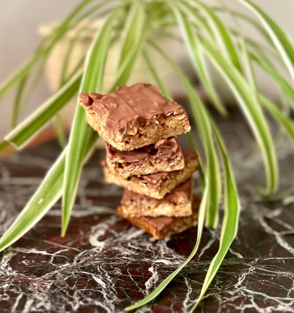– Smält smöret och tillsätt alla ingredienser utom chokladen, blanda väl och häll i en bakplåtspappersklädd ugnsform, ca 32*22cm – Baka mitt i ugnen på 175°c i ca 15-20min – Låt kakan svalna och smält sedan chokladen, mörk eller ljus, och bred ut över kakan – Skär kakan i rutor medan chokladen är mjuk