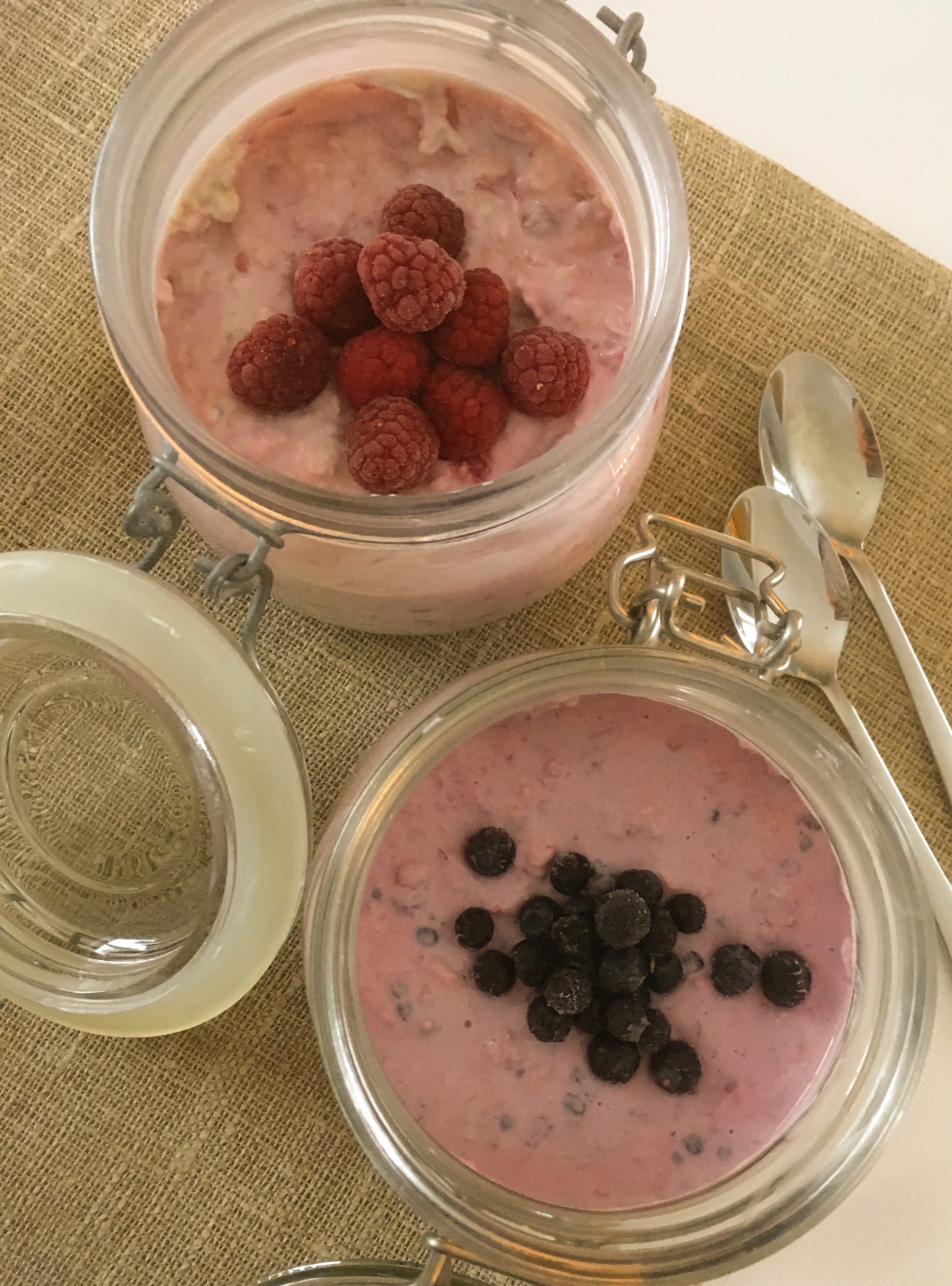 Världens smidigaste mellan mål! Det är supersmidigt att slänga ihop over night oats och det är både nyttigt och mättande! Det går att variera smaken i all oändlighet och den håller i kylen i ca 3dagar.